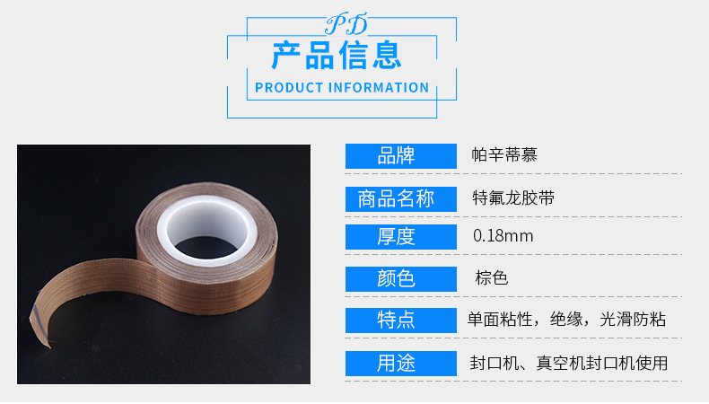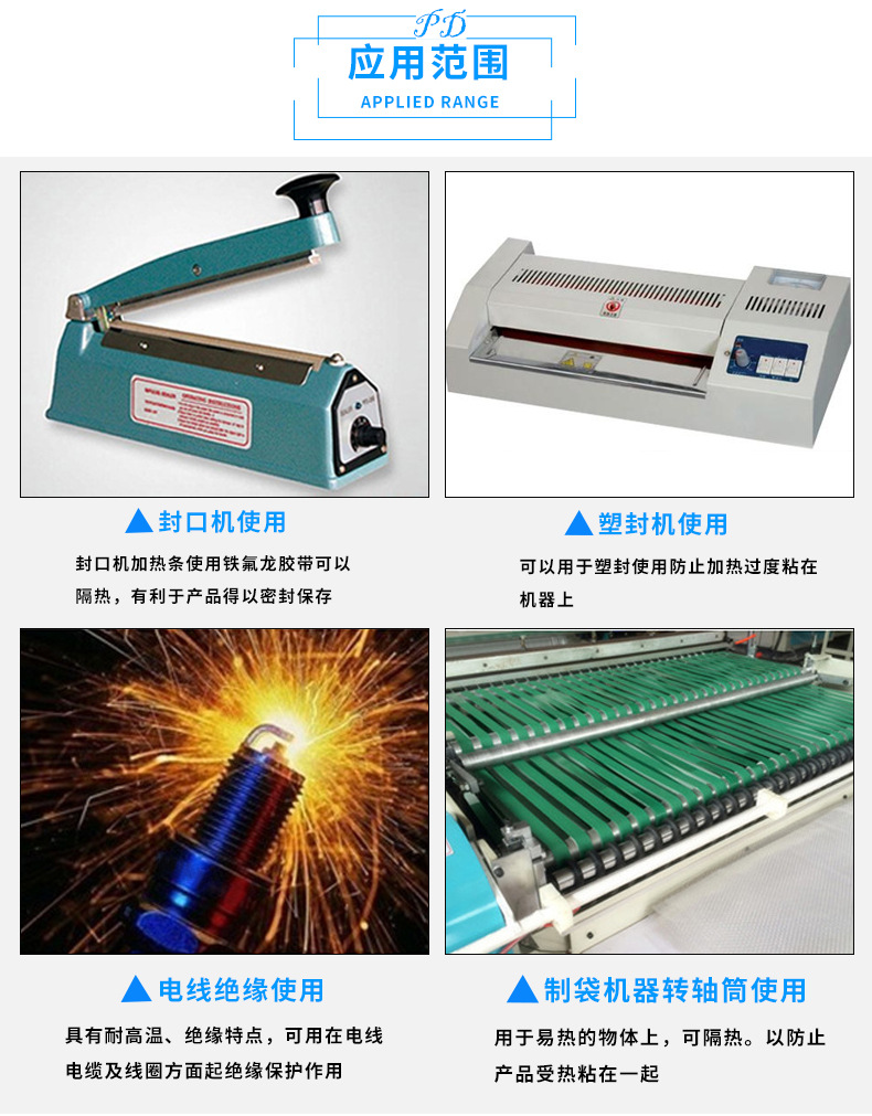 帕辛蒂慕專注優(yōu)質(zhì)PTFE鐵特氟龍食品包裝封口機防粘耐酸堿絕緣耐高溫高溫布膠帶